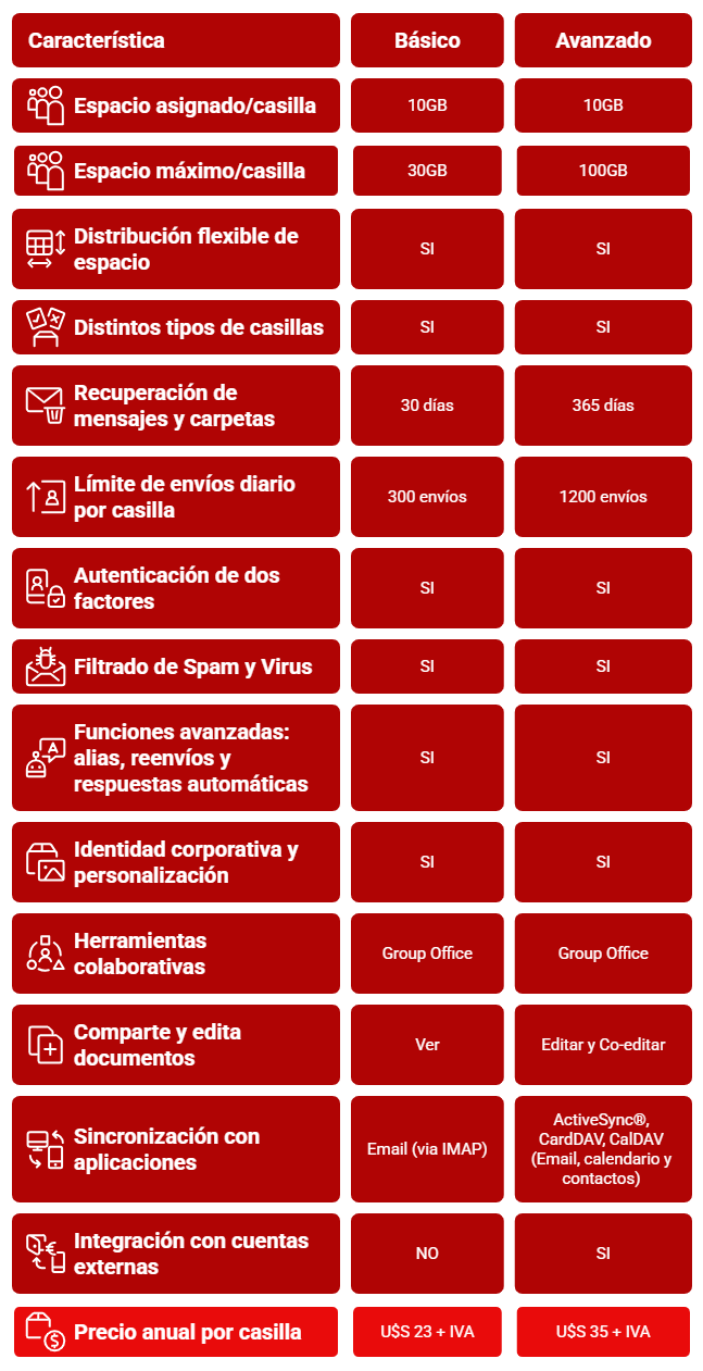 - IMAP/ POP seguro (para Outlook y acceso móvil)